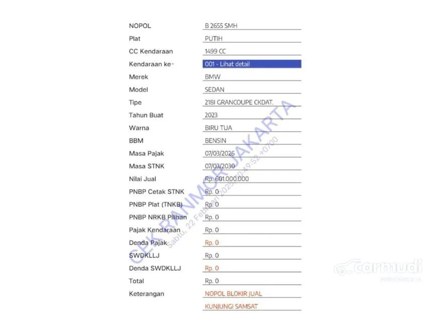 Plat : B 2655 SMH ( Ganjil Jakarta )