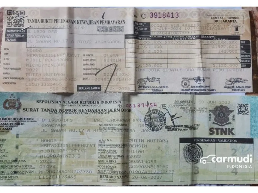 * STNK atas nama Perorangan