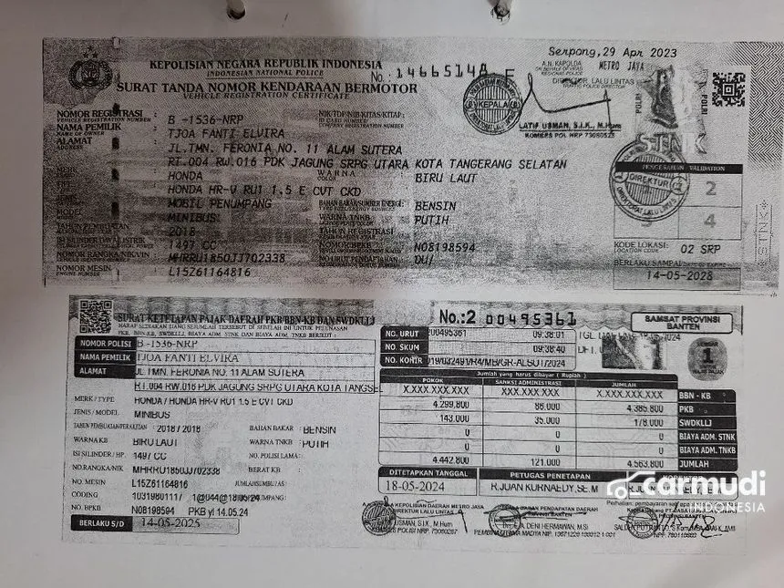 MERK.            : HONDA HRV E. 1,5cvt