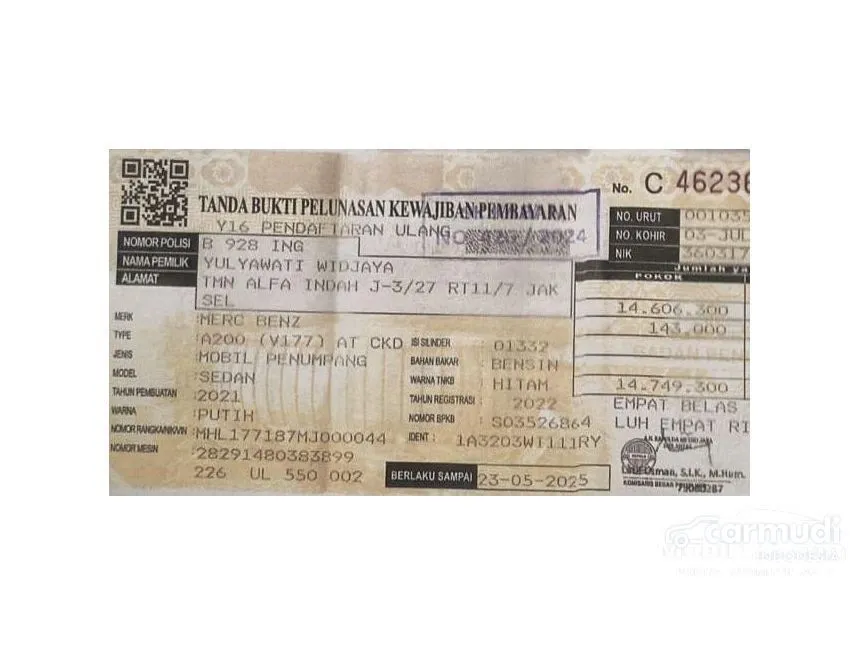 Garansi sertifikat otospector mobil tidak ada bekas tabrakan dan banjir.
