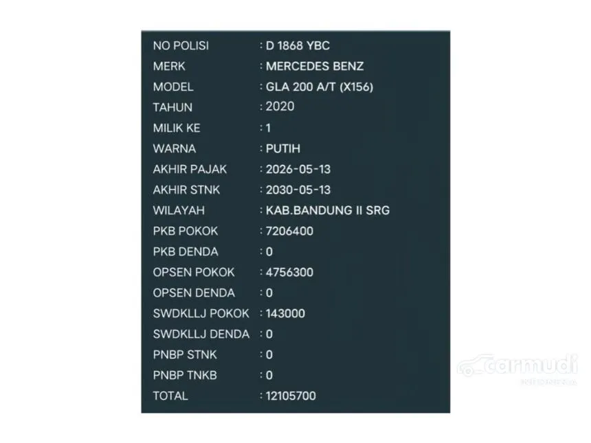 Plat : D 1868 YBC ( Genap Bandung )
