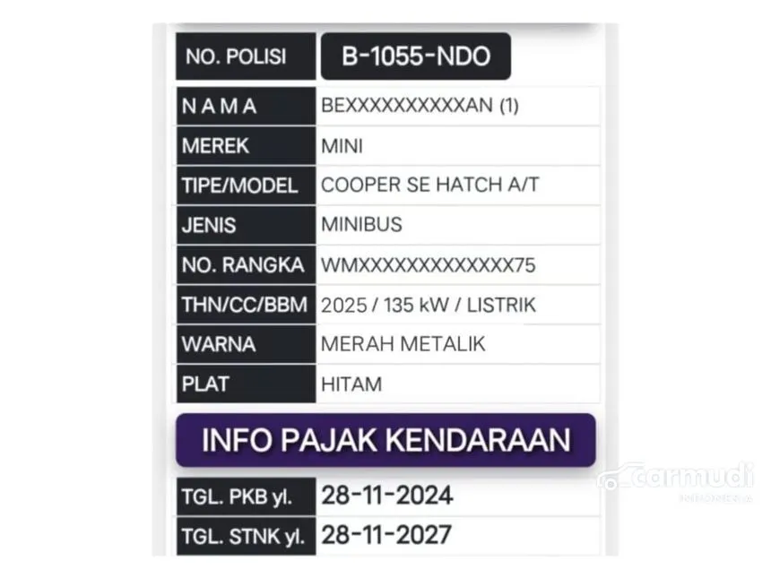 MINI COOPER SE EV LISTRIK 3 DOORS AT 2025 MERAH • Chili Red - Nik 2023