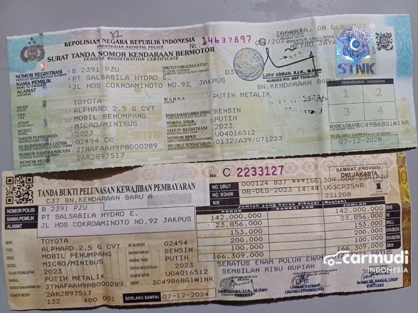 Alphard 2.5 G Bensin AT Nik 2023