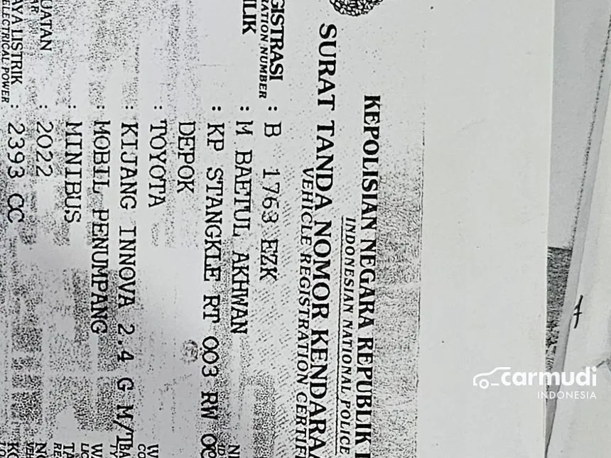 2022 Toyota Kijang Innova 2,4 G MPV