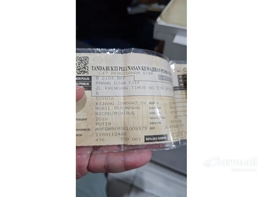 2016 Toyota Kijang Innova 2.0 V MPV Matic Putih KM 14rbuan Ori TGN 1 Bebas Laka Banjir