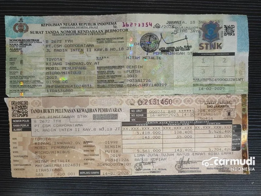 Plat Ganjil ( B 2672 TYH )