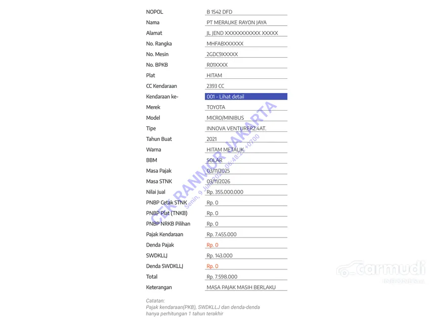 Pajak sampai Juli 2026