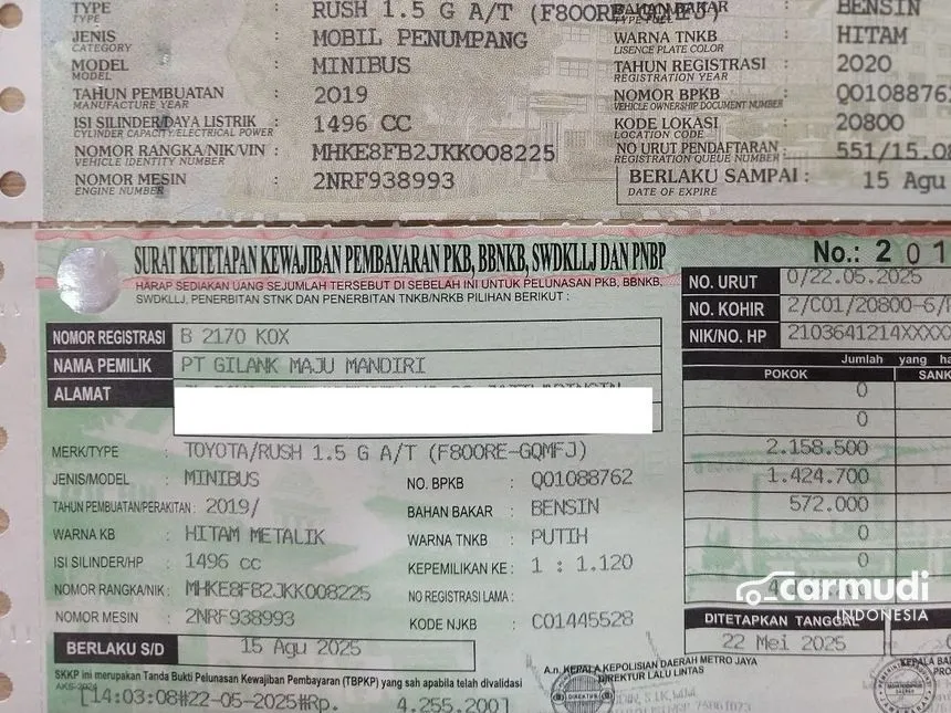 KM 21 RB, 2019 Toyota Rush 1,5 G SUV AT